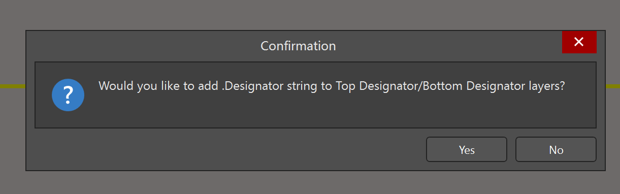 4)、確認(rèn)后點(diǎn)擊“OK”會(huì)彈出圖3對(duì)話框,詢問是否要在指定的機(jī)械層添加特殊字符“.Designator”。由于要顯示位號(hào),所以此處選yes。