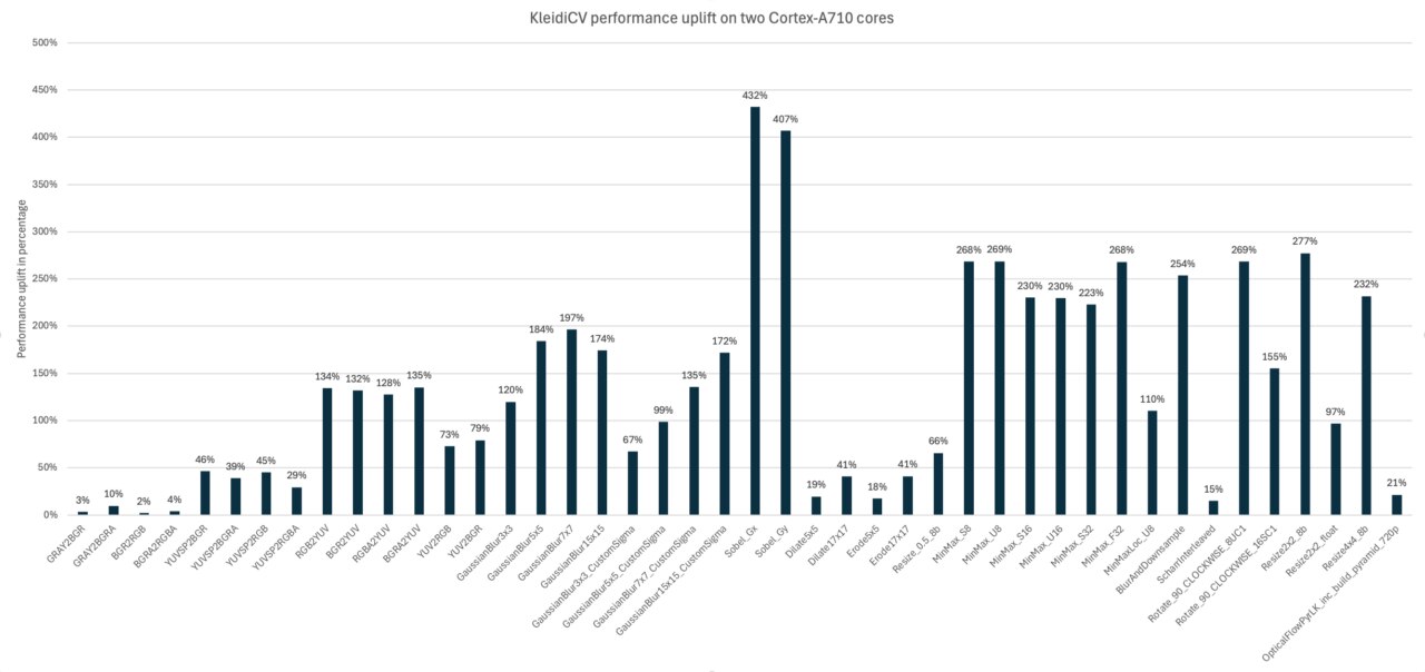 計算機視覺技術已廣泛應用于圖像識別、增強現實等領域。作為行業領先的開源庫,OpenCV的Python包日下載量已超過30萬次。資深軟件工程師Mark Horvath介紹,KleidiCV通過新增的多線程支持,能夠充分發揮多核CPU的性能優勢,顯著提升圖像處理效率。目前,Android平臺的OpenCV4.11版本已默認集成KleidiCV,開發者可便捷獲取性能優化支持。