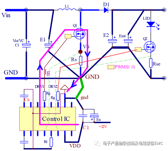 A.開關電源拓撲主電流回流路徑面積*小化;驅動脈沖電流回路*小化。