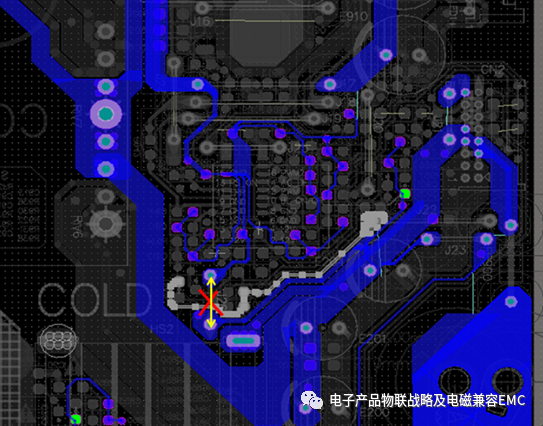 我們就要采用電氣并聯的方式就近增加一個高頻電容達成共地(如圖紅色虛線)!