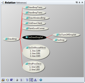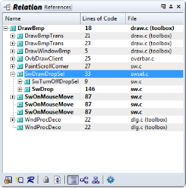 Relation Window 是 Source Insight 的一項(xiàng)創(chuàng)新,可顯示函數(shù)/符號(hào)之間的相互關(guān)系。 它在自己的面板窗口中在后臺(tái)運(yùn)行,并跟蹤您選擇的符號(hào)。 它可以顯示類(lèi)層次結(jié)構(gòu)、調(diào)用樹(shù)、引用樹(shù)等。