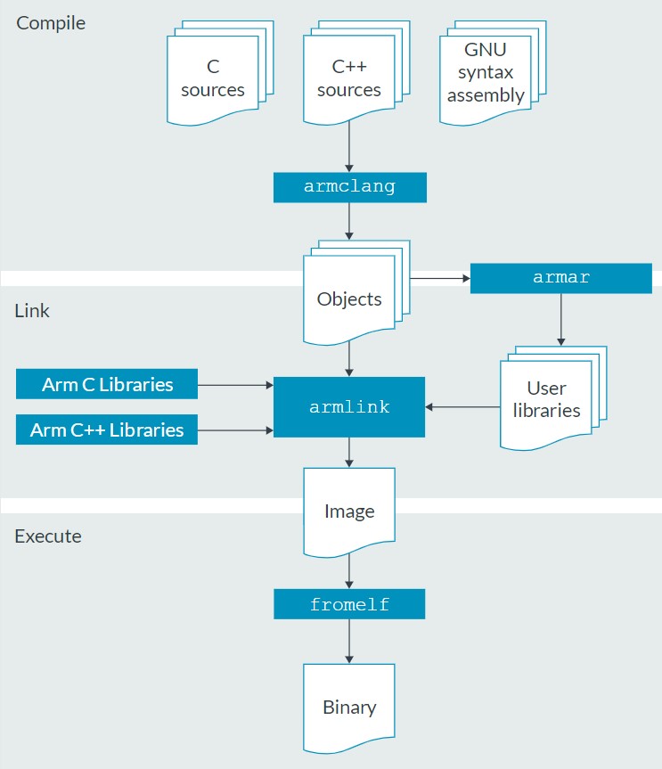 ● armlink:功能豐富的專用嵌入式鏈接器,將對(duì)象和庫結(jié)合起來生成可執(zhí)行文件