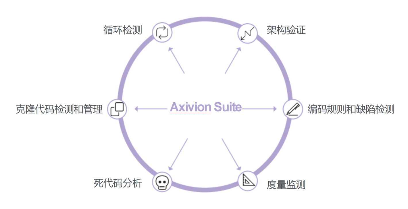 Axivion Suite包含Axivion Static Code Analysis和AxivionArchitecture Verification,將為您提供業界領先的代碼深入 分析服務。此外還包括Axivion Tool Qualification Kit,用于執行特定檢 查,并驗證其在具有功能安全要求的環境中的適用性。