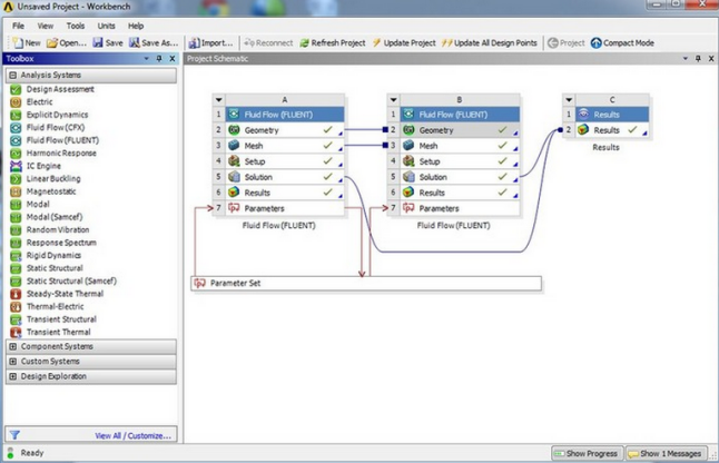 Fluent完全集成在ANSYS Workbench環境中,該平臺可支持實現高效靈活的工作流、CAD連接以及強大的幾何結構建模和網格剖分功能。內置的參數管理器使其方便快速探索多個設計選項。