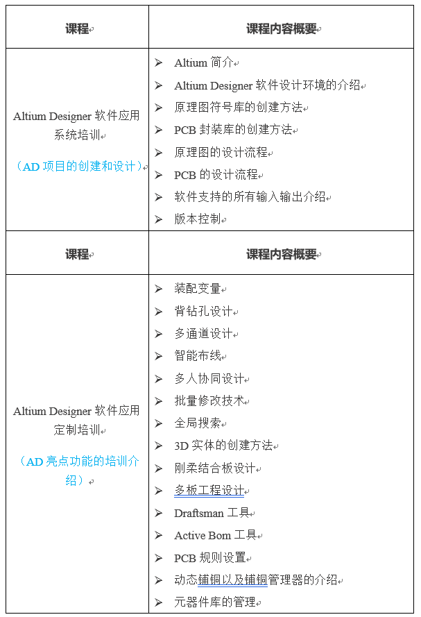 · Altium Designer軟件定制培訓學費 RMB 10,000/天(1天起售,10人以下參加)。