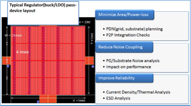 移動及IoT設備的爆炸性增長以及這些設備對能耗效率要求的提高推動了對電源管理IP的需求。任何可能導致局部電流密度增加、電壓下降或噪聲耦合的設計缺陷都會影響電力配送。因此,設計人員必須找出此類缺陷,尤其是特定于電源管理電路的缺陷。因為電源管理IP廣泛應用于全芯片集成的多種功能模塊,設計人員必須在全芯片設計的背景下看待這些缺陷,這無疑更具挑戰。