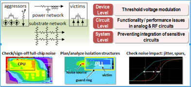 電路中常見的是來自于高速數字電路的噪聲到敏感的模擬及RF塊的噪聲耦合。這需要展開真正的模數混合電源噪聲及可靠性分析。