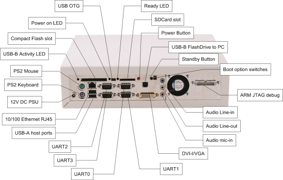 主板 Express?uATX(或 V2M-P1)是 Versatile Express 系列中的第一款可用主板。它嵌在 uATX 大小的兩件式漂亮塑料外殼內。活動式殼蓋可以露出主板以便安裝子板和連接測試設備。所有連接器和控制器都安裝在后面板上。