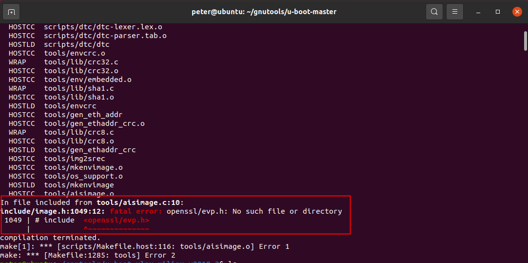 下載Uboot的源代碼(u-boot-master.tar.gz)后,在編譯時出現如圖2-1所示: