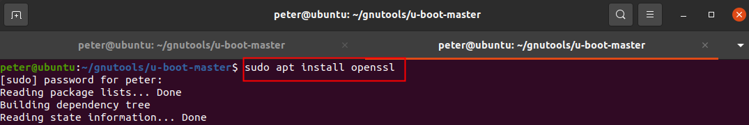 1)、在命令行中安裝一下OPENSSL:sudo apt install openssl,如圖4-1所示:
