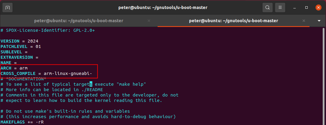 2)、用VIM修改一下Uboot的Makefile,添加如圖4-2中紅框中的內容: