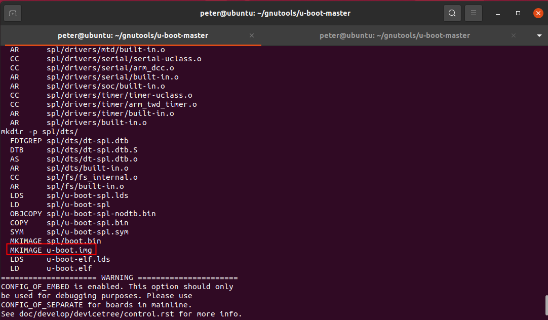 3)、輸入“make”,重新編譯一下Uboot,如圖4-3所示: