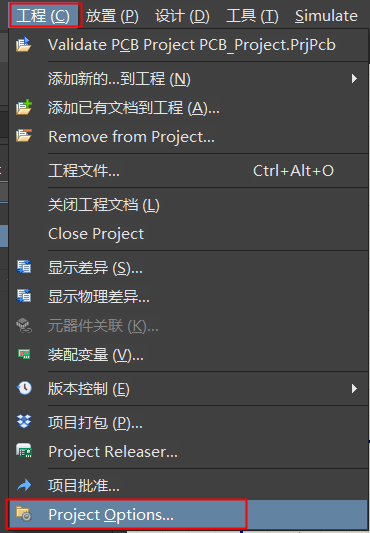 打開【工程】【Project Options…】