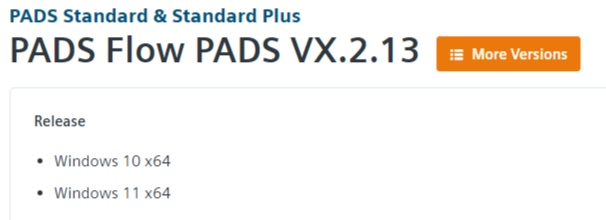 PADS 標準版:Windows 10 及以上版本 64 位操作系統