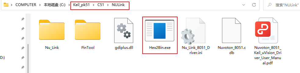 (1)、在PK51的安裝目錄下的C51NULink文件夾中,就有執行程序Hex2Bin.exe(如圖4-1-1)。