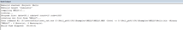 (3)、然后,去重新Build工程,就可以在Build output窗口中看到命令執行的情況(如圖4-1-3)。并且在hex文件的位置看到bin文件的生成(如圖4-1-4)。