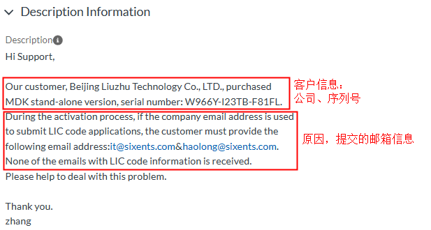 原廠會給到包含 LIC 碼及對應郵箱提交的信息。僅提供一個 LIC 信息給到用戶。