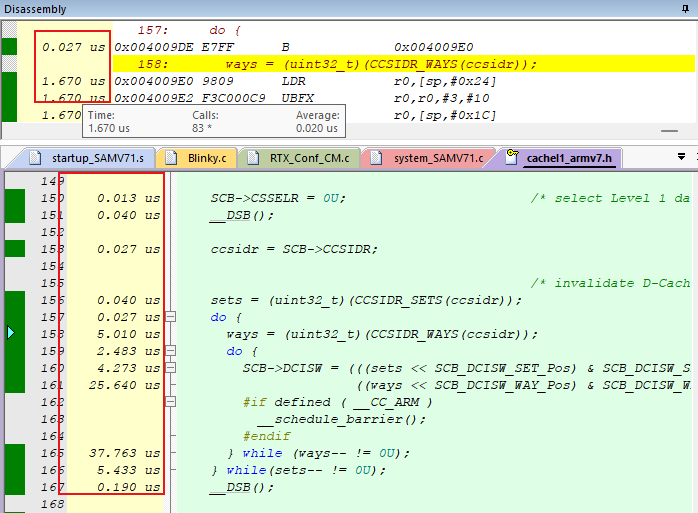 (2)、使用ULINK pro仿真器,配置Trace功能,使用Execution Profiler功能。(關于如何配置Trace功能,請查看技術文檔中的:Keil MDK Trace功能配置)。