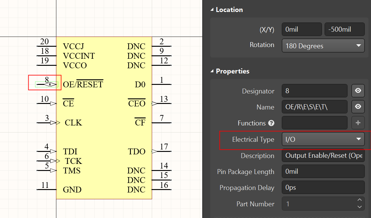 如果一個(gè)引腳既可以作為輸出也可以作為輸入或者工程師不清楚引腳的實(shí)際功能,可以定義為Passive,這樣軟件在進(jìn)行電氣規(guī)則檢查時(shí)就會(huì)忽略該引腳。