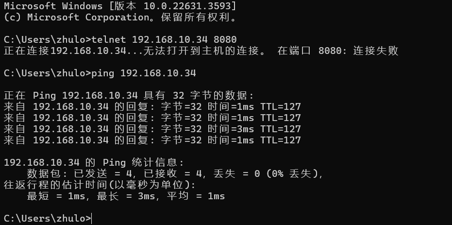 服務器機器telnet 192.168.10.34 8080沒有權限,可以ping通,有正常的網(wǎng)絡連接。