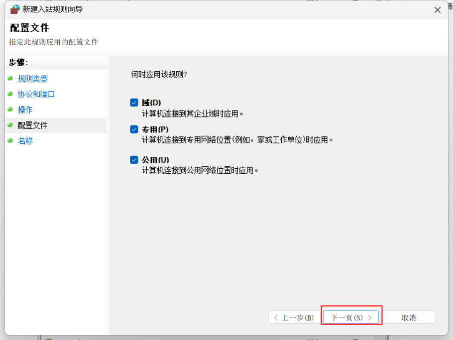 6)、應用規(guī)則均選擇,”再點擊"下一頁(N)"