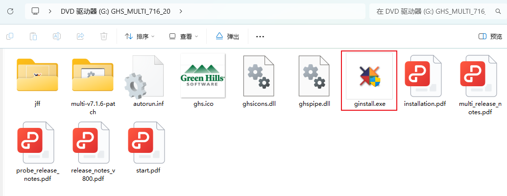 MULTI 7.1.6(d)版本的安裝包中需要通過“ginstall.exe”命令去實現自動安裝。(如圖4-1)