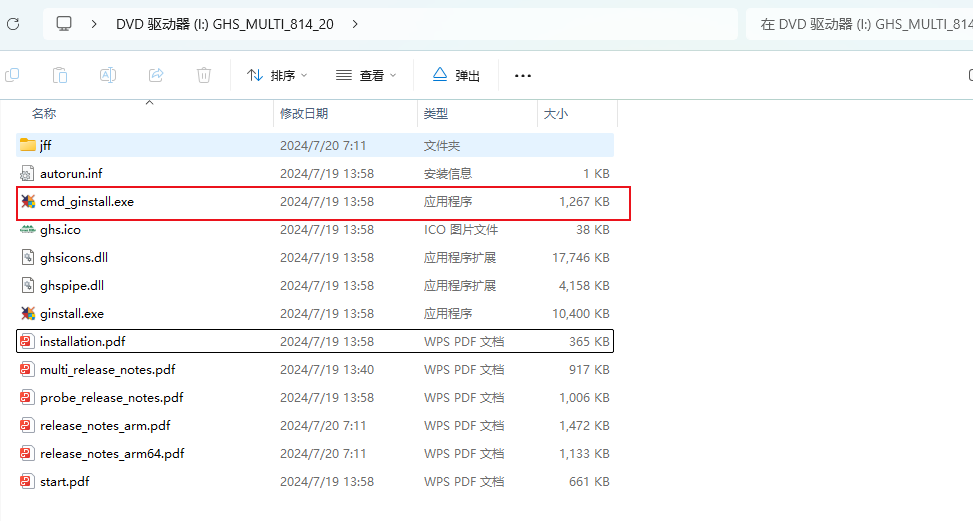 (4)、"ginstall"和“cmd_ginstall”命令的區別在于,"ginstall"命令在執行后會打開GHS的安裝界面,但是,“cmd_install”并不會,“cmd_install”只會打開一個對應的命令窗口。