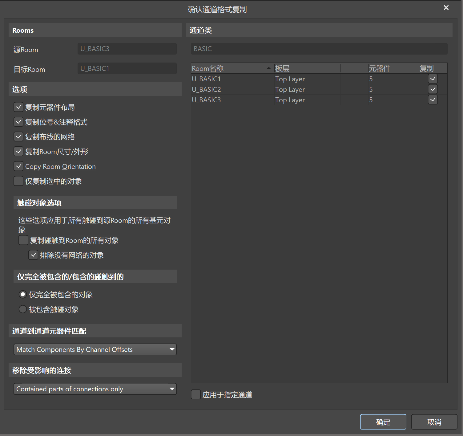 復制布線的網絡:勾選此項可將源Room的布線復制到指定的Room