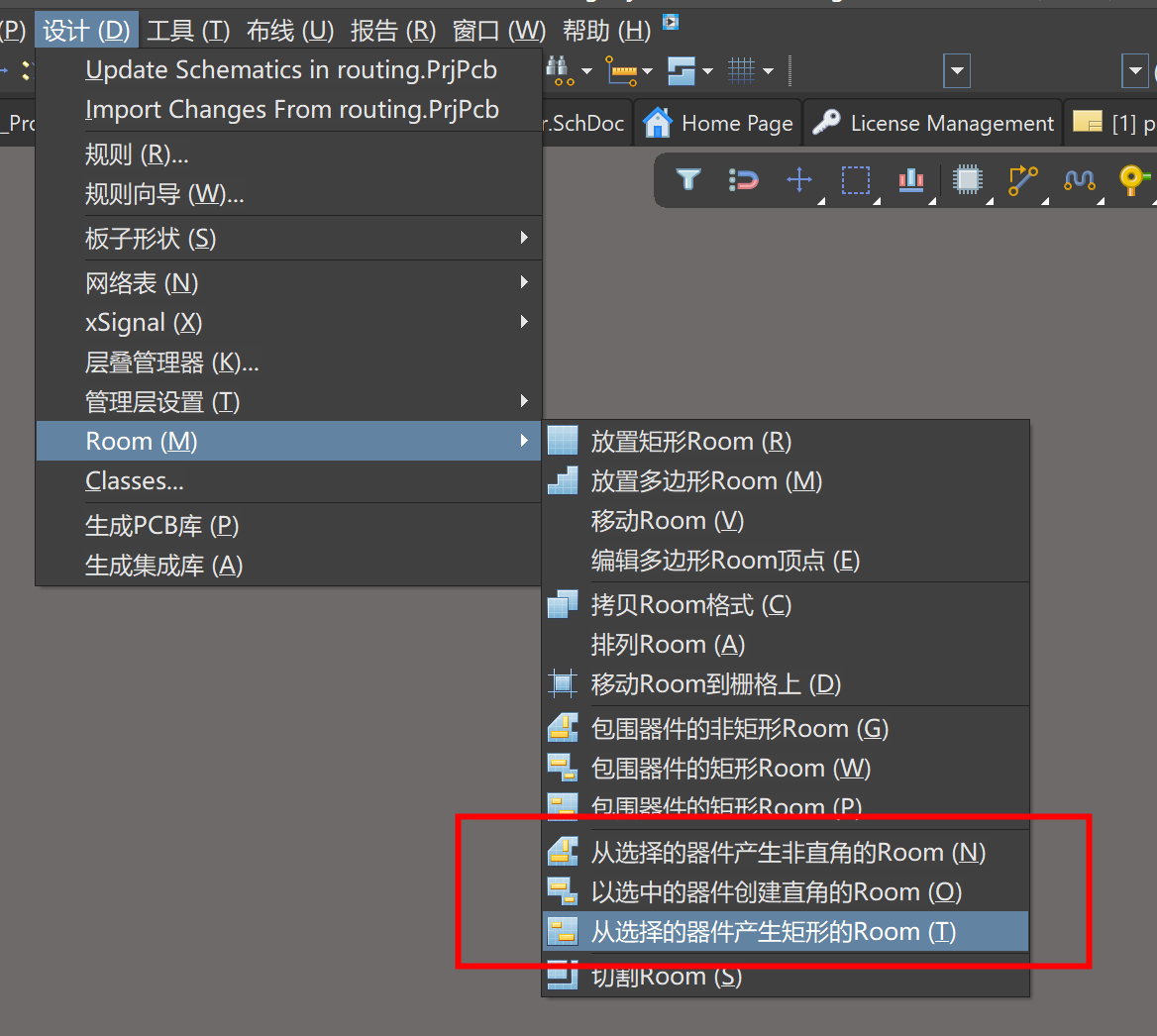 4)分別雙擊兩個Room,將適用對象選擇對應的Component Class。此時再去拖動Room,會發現元器件會隨著Room一起移動,這就表示Room和元器件已經關聯起來了。也可以使用圖18中“從選擇的器件創建Room”來直接生成一個Room,這樣也可以將Room和元器件關聯。