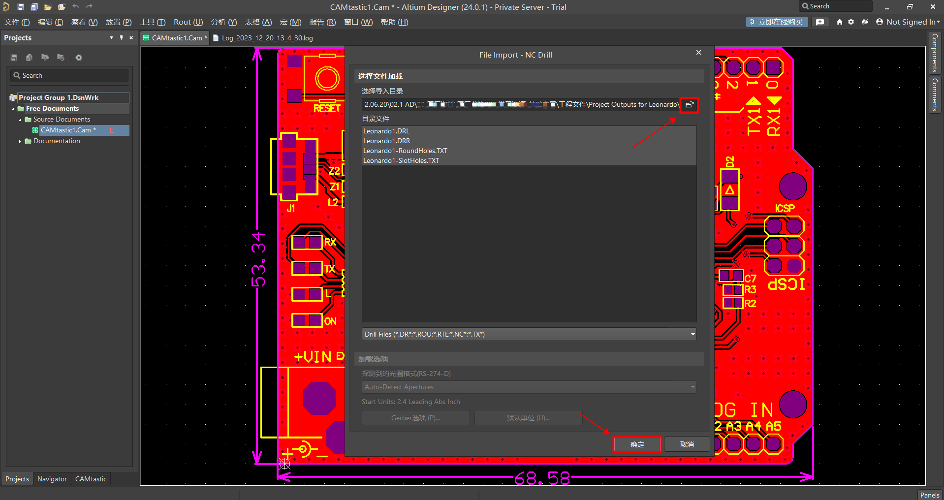 彈出【輸入 Gerber-選項】對話框,點擊【確定】