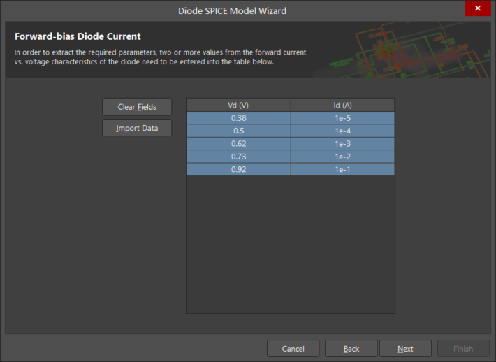 使用 Altium Designer 提供的 SPICE Model Wizard (SPICE模型向導)基于用戶得到的數據,就可以定義這些器件的模型。直接輸入的參數,或者從所提供的數據中提取出來的參數,直接寫入到模型文件中,然后鏈接到原理圖中的元器件。