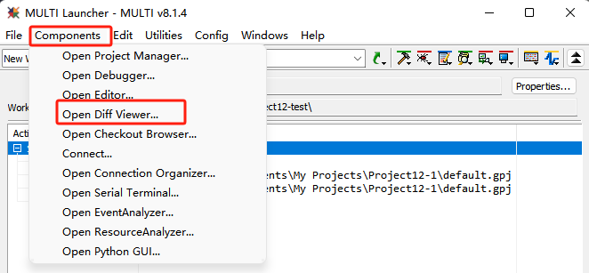 1)、在MULTI Launcher窗口中,選擇Components->Open Diff Viewer(如圖4-1)。