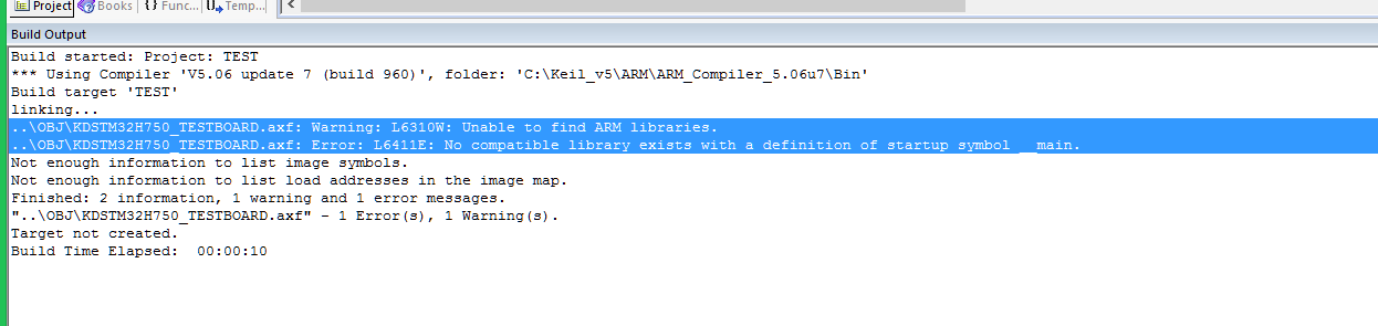 在MDK進行構建工程的時候,出現(xiàn)提示“Warning: L6310W: Unable to find ARM libraries.”的警告信息。