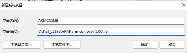 2、找到電腦->屬性->高級->環(huán)境變量,查看環(huán)境變量中是否有設置“ARMCC5LIB”這個環(huán)境變量,確認變量值是否是正確的?是否是MDK安裝目錄下的編譯器目錄下的lib文件夾路徑?(如圖4-2)如:“C:Keil_v538aARMarm compiler 5.06lib”