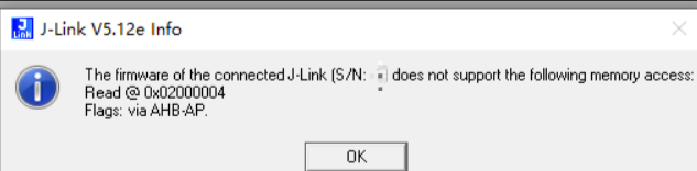 錯誤提示The firmware of the connected J-Link (S/N: XXXX) does not support the following memory access