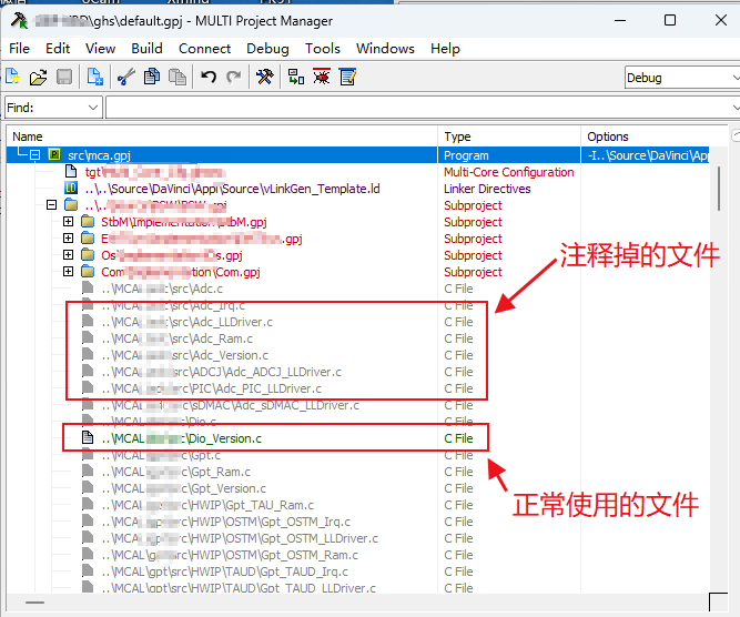 解決對于GHS工程中的源文件進行注釋掉,不進行編譯或者進行顯示。